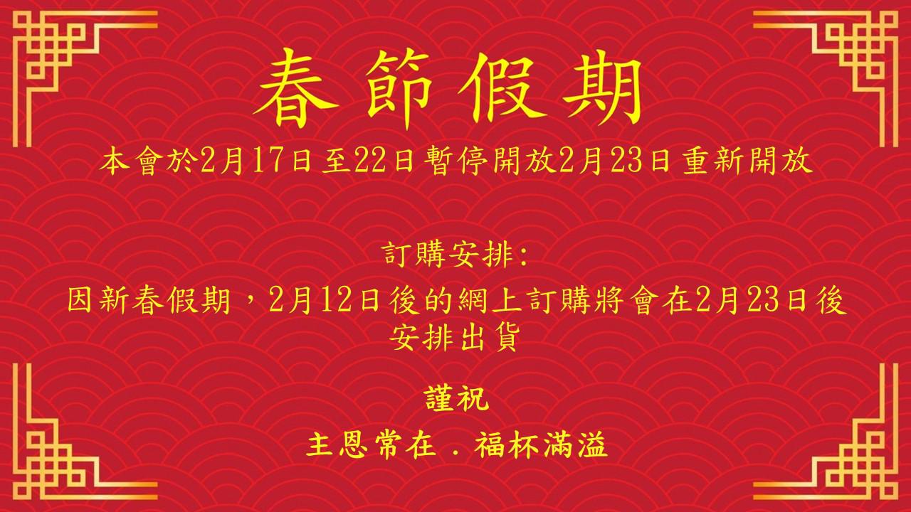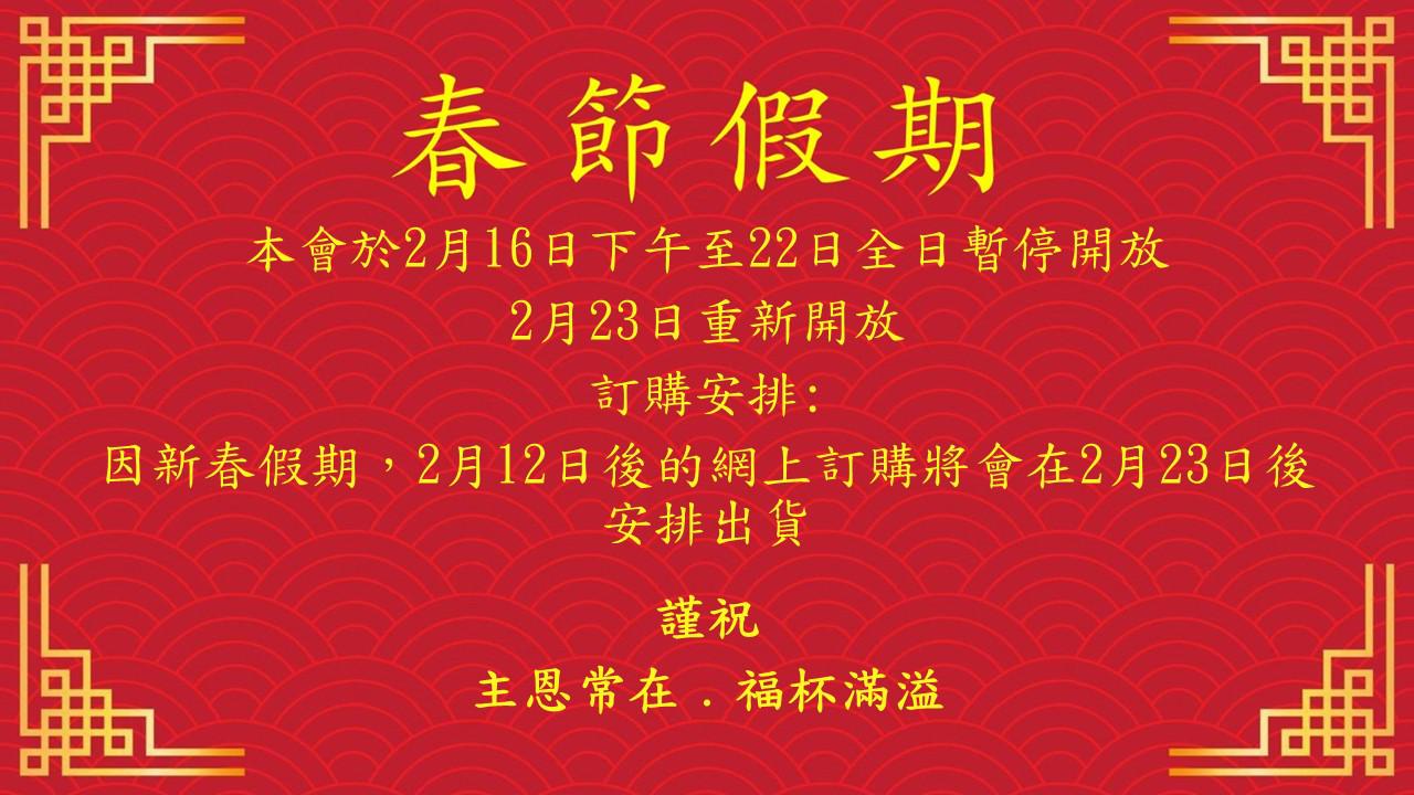 18/12/2025 - 本會於 12月18日暫停開放;2026年1月6日重開。 12/11/2025 - 本會於 11月14日暫停開放;2025年11月17日重開。 26/6/2025 - 本會於 6月26日(星期四) 暫停開放;2025年6月27日(星期五) 重開。28/1/2025 - 本會於 1月28日下午至 2月2日暫停開放;2025年2月3日(星期一)重開。